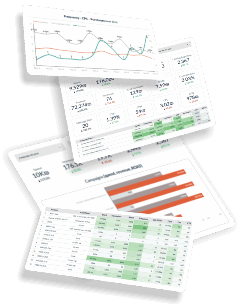 כל מספר בדאשבורד מספר סיפור: כמה עלה ליד, מה אחוז הסגירה, ומה הערך האמיתי של כל קמפיין.